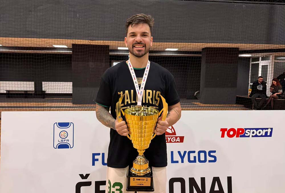 Os três meses de Daniel Rosa pelo futsal da Lituânia não poderiam terminar de forma melhor. Campeão da Copa da Lituânia no fim de fevereiro, o ala jaraguaense encerrou a temporada com o FK Žalgiris conquistando a “dobradinha”, ao também levantar o caneco da Liga Lituana.
