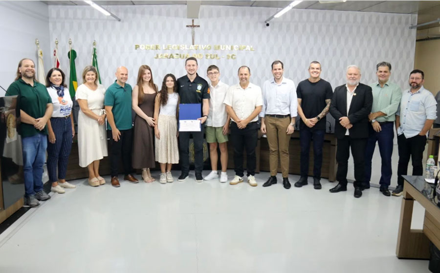 O documento também ressalta que o trabalho de Mauro Sandri contribui para projetar o nome de Jaraguá do Sul no cenário esportivo internacional, além de servir como inspiração para atletas e profissionais da área.